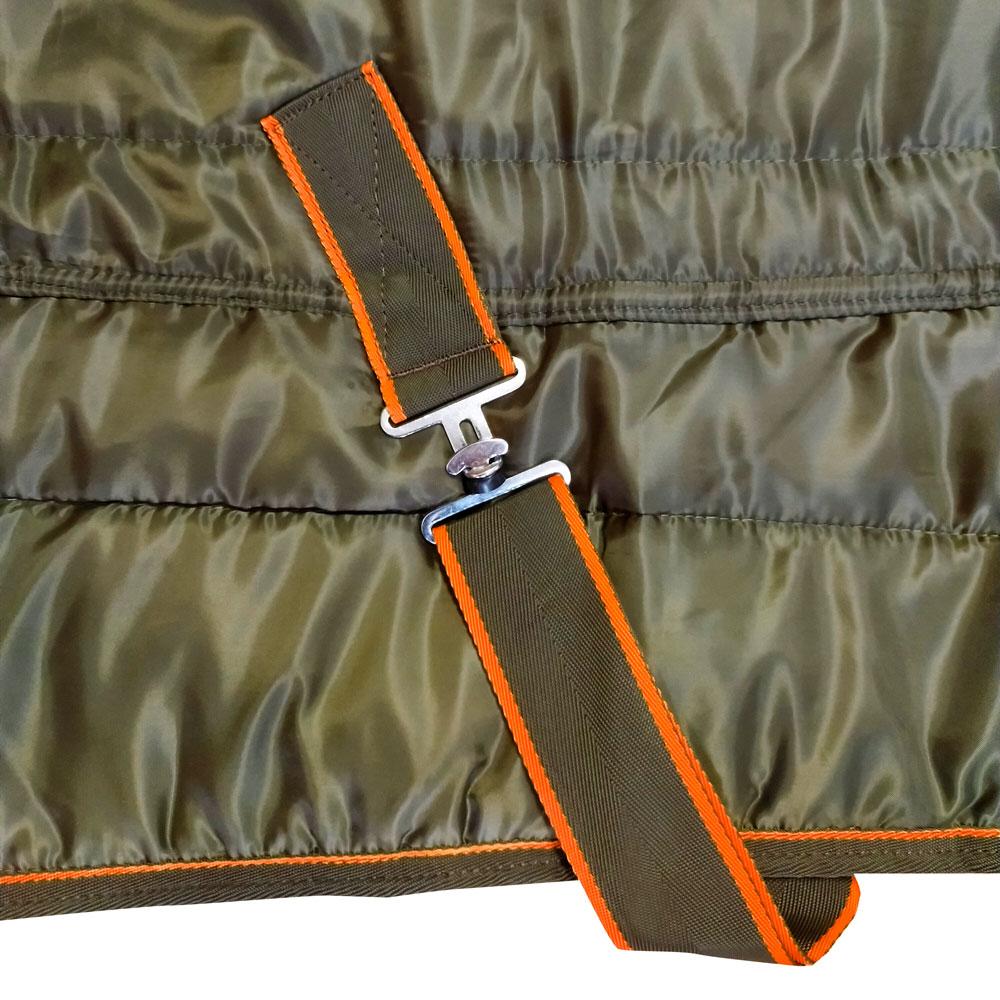 Cinchuelo cruzado y cordón ajustable interior para adaptarla al caballo, proporcionando más calidez y así evitar que le entre corrientes de aire.